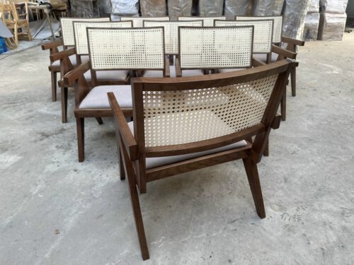 khung gỗ ash tự nhiên tựa lưng đan mây , sơn PU bọc nệm theo yêu cầu